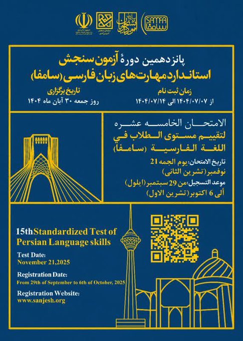 15th Standardized Test of Persian Language Skills will be held on November  21, 2025.